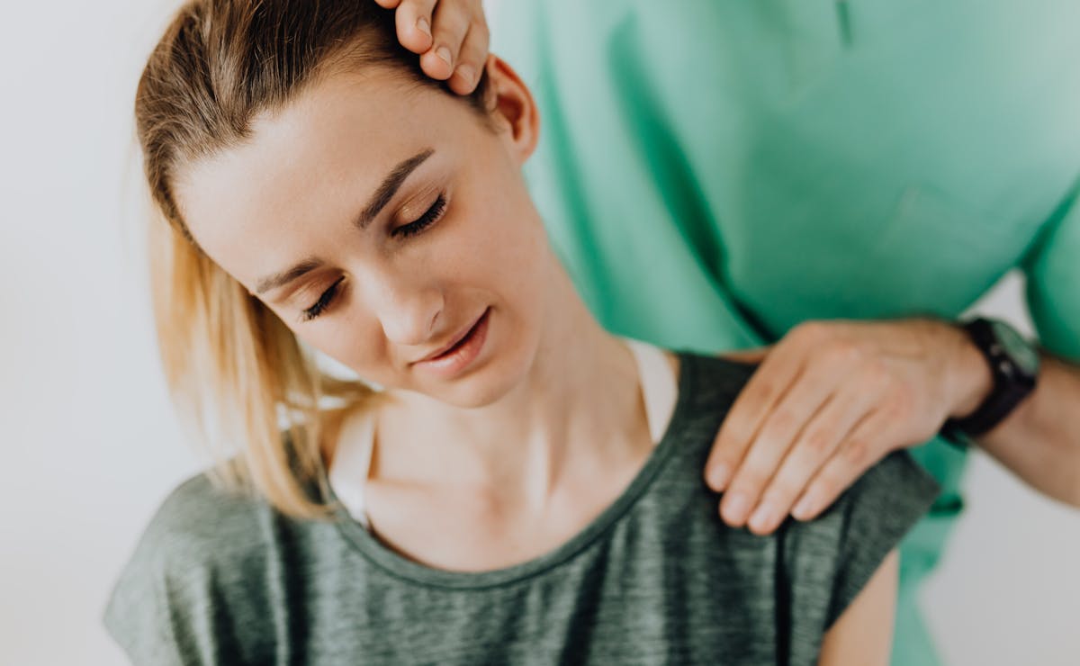 To relieve tension in the nape of the neck, you should massage it with more pressure – but use an intensity that is still comfortable.