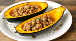 Acorn Squash Breakfast Boats with Ground Turkey